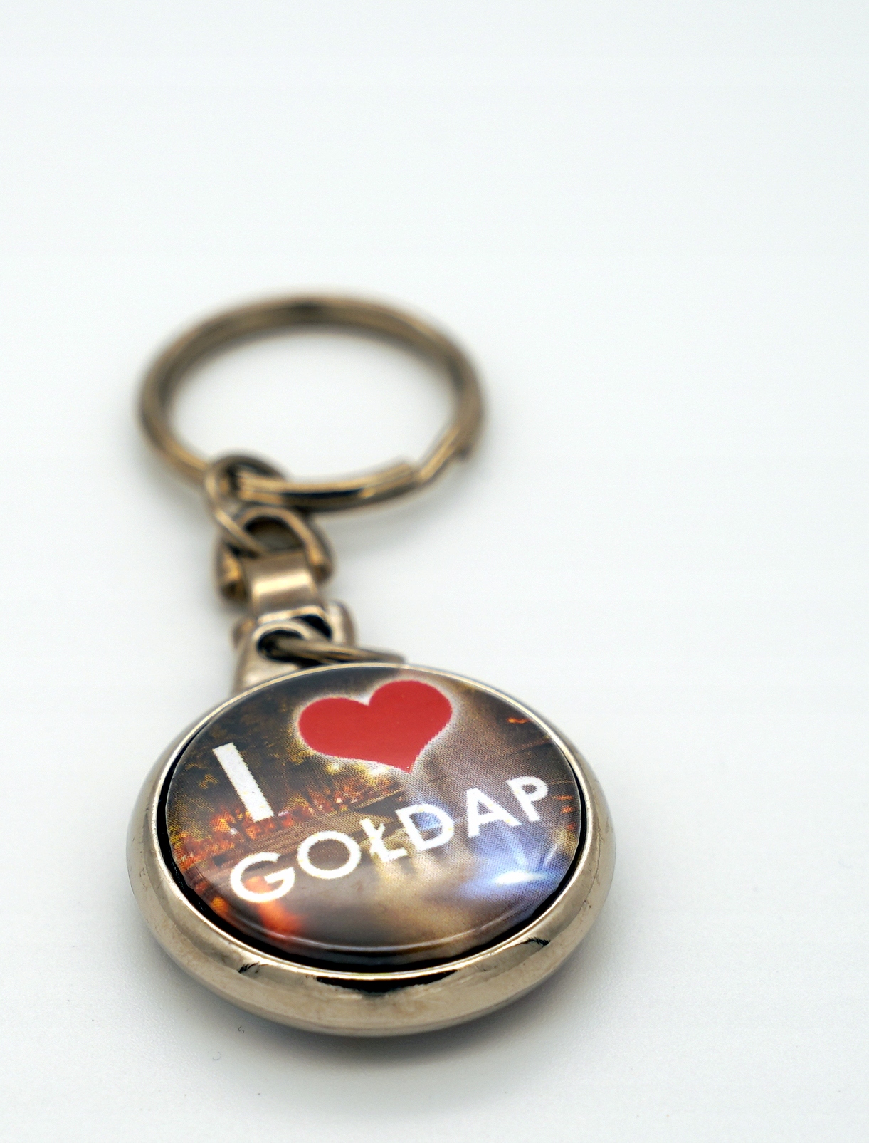 Brelok metalowy z obrazkami i grafikami z Gołdapi
