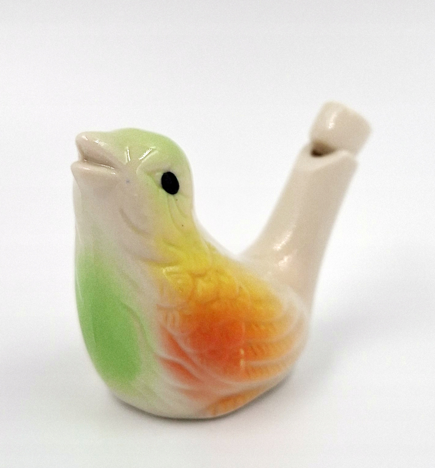 Po wlaniu wody do środka, gwizdek wydaje dźwięk naśladujący ptasie ćwierkanie.