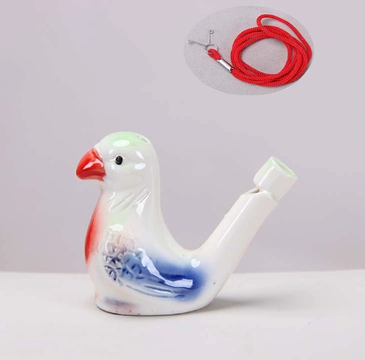 Po wlaniu wody do środka, gwizdek wydaje dźwięk naśladujący ptasie ćwierkanie.