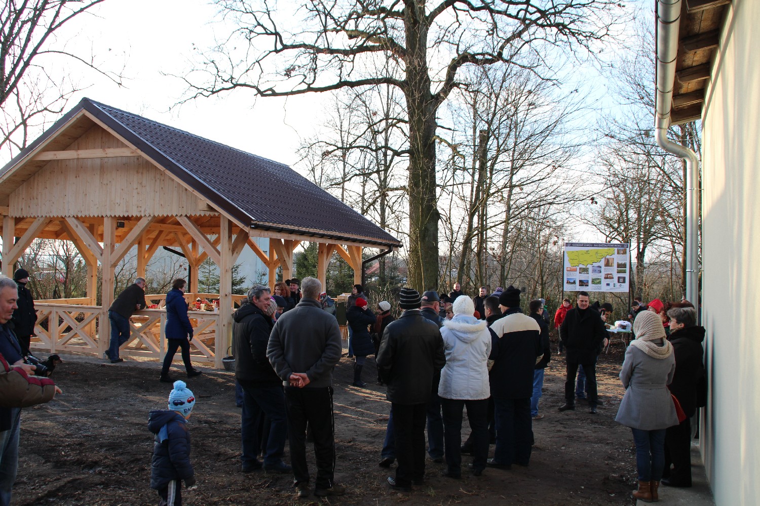 22 grudnia 2014Dobiega końca realizowany przez Gminę Gołdap projekt pod nazwą ,,Utworzenie miejsca rekreacji i wypoczynku w miejscowości Skocze”. Jego celem był rozwój turystyki i rekreacji oraz poprawa jakości życia mieszkańców wsi Skocze. W ramach projektu powstała wiata rekreacyjna wyposażona w stoły, ławy oraz ławeczki, przy której zamontowano stojak na rowery oraz tablicę z turystycznymi atrakcjami gminy. Zagospodarowany teren ma służyć jako miejsce do rekreacji, integracji i wspólnych działań dla mieszkańców. Wiata będzie również doskonałym miejscem do odpoczynku w trakcie podróży dla turystów. W ramach projektu na zagospodarowanym terenie lokalny animator ze Skocz zorganizował dla lokalnej społeczności 4 spotkania integracyjne. Spotkania, które miały też edukacyjny charakter, były okazją do wspomnień, rozmów na temat dziedzictwa kulturowego, tradycji, walorów przyrodniczych, czy wymianą kulinarnych inspiracji. Ciekawostką okazało się organizowane w ramach projektu szkolenie ,,Warto być pszczelarzem”. Mieszkańcy i zaproszeni goście wspólnie bawili się podczas imprezy ,,Skocze razem”, której towarzyszyło ognisko z pieczeniem kiełbasek. Przygotowano również ulotkę z informacjami i ciekawostkami na temat Gminy Gołdap i Skocz. Gmina Gołdap na realizację projektu pozyskała dofinansowanie z Unii Europejskiej.