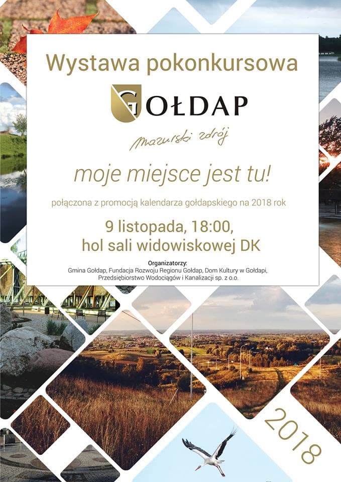 8 listopada 2017Serdecznie zapraszamy na wystawę pokonkursową „Gołdap -Mazurski Zdrój – Moje miejsce jest tu”, która odbędzie się 9 listopada 2017 roku o godzinie 18:00 w holu sali widowiskowej Domu Kultury w Gołdapi (wejście do Kina Kultura).